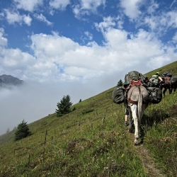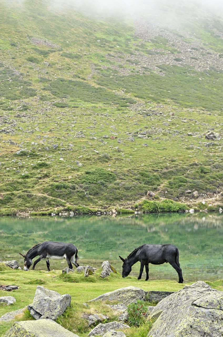 Nous avons ensuite longé le lac, passé un col, traversé une vallée pour installer notre second campement au bord du lac d’Ourette au milieu des vaches et des chevaux